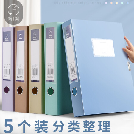 簡繁 55mm莫蘭迪A4粘扣檔案盒5個裝 文件收納資料盒塑料整理盒辦公用品 藍+紫+黃+綠+桔